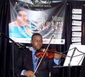 Other participants at the UNCF event included Jonathan Clarence Parrish Spence (pictured left). Jonathan is the youngest member of Trilogy Poetry and is the co-author of Trilogy Moments for the Mind, Body and Soul and A Trilogy of Poetry, Prose and Thoughts for the Mind, Body and Soul. Jonathan, who is also a violinist, orator, and actor, played numerous violin selections for the audience. His performance brought smiles to many faces attending the fundraiser; in return they enthusiastically rendered ovations for his exciting musical skills. |