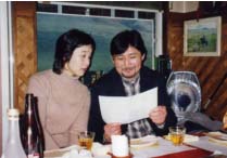 2006年1月9日、文京区千石にあるモンゴル料理シリンゴルで内モンゴルの詩人R・スチンチョグト氏(斯琴朝克図、Chaoketu Siqin)送別会が行われた。氏と親交のあるモンゴル人と日本人の友人ら十数名が集まり、美味しいモンゴル料理を食べ、ウォッカーで乾杯しながら思い出話に花を咲かせた。この席に、世界俳句協会の創立者で著名な俳人の夏石番矢先生、それに鎌倉佐弓先生と高宮千恵先生らの姿もあった。一見不思議な組み合わせである。詩人の送別会に相応しく、詩の朗詠あり、歌ありと大いに盛り上がった。 |
