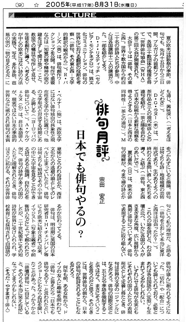 Tokyo shinbun 31/08/2005 ; Japanese newspaper