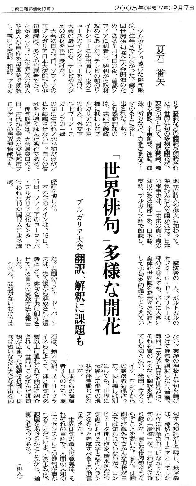 Yomiuri shinbun 07/09/2005 ; Japanese newspaper